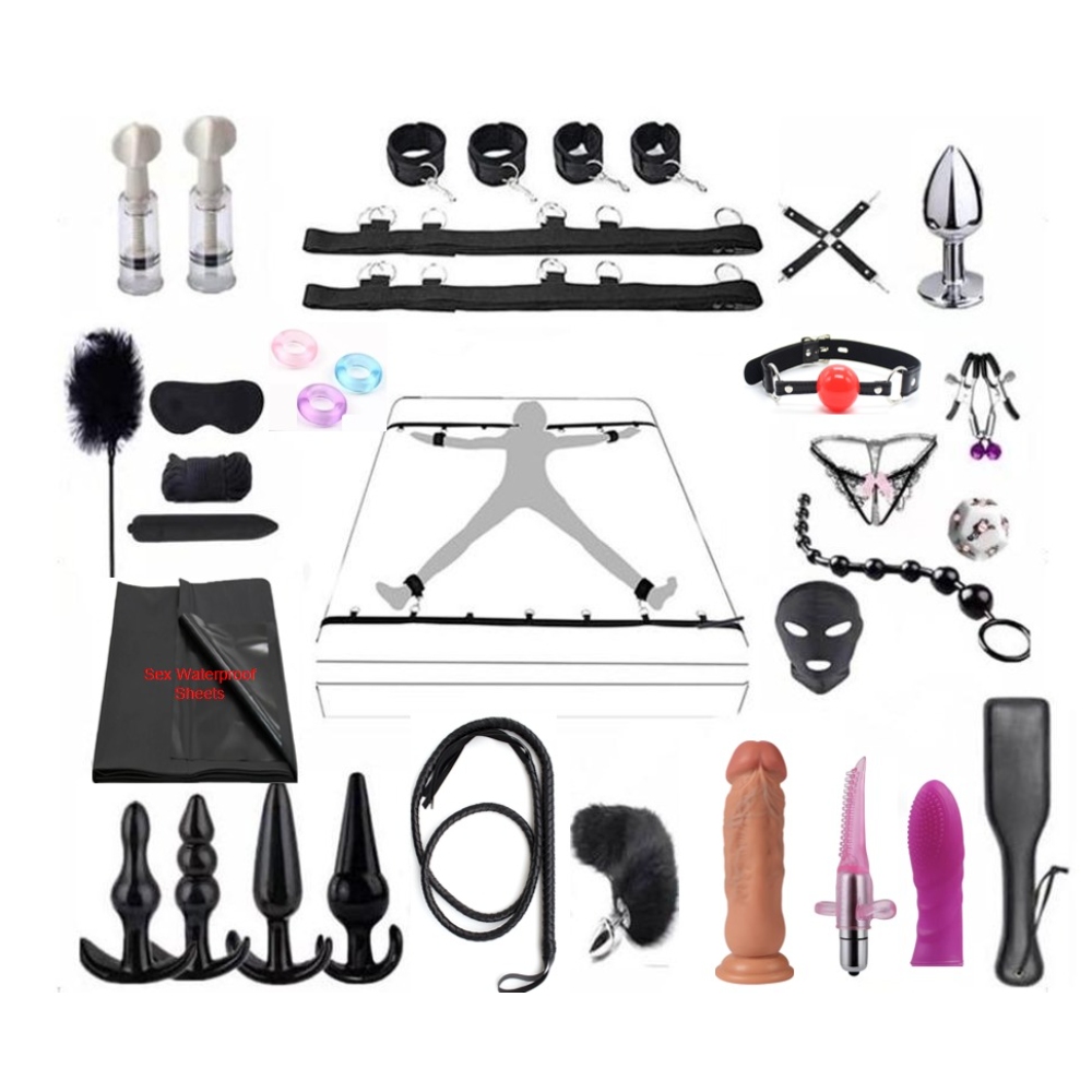 Material: Nylon+pu , metal accessories Color: black Leather whip : 190 CM 27pieces full set for BDSM bondage fun combination set alternative sex toy