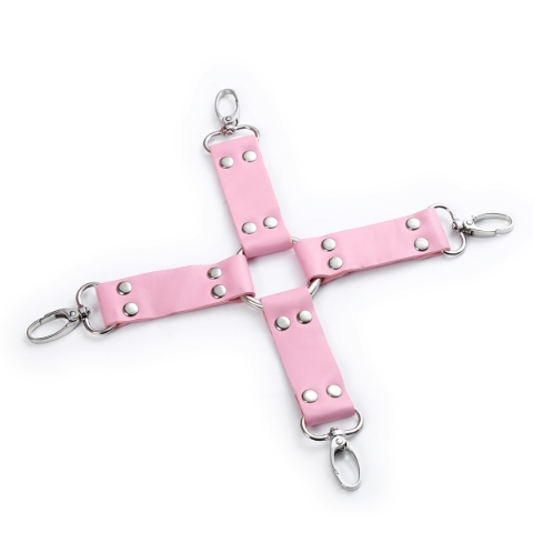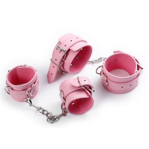 wrist & ankle restraints, eye mask, whip, collar, ball gag, hogtie & nipple clamps , pink
