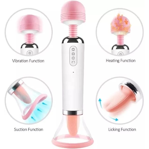 Introducing the all–in–one pleasure device – the Dual–End Vibrator! This compact device is perfect for those seeking versatility and serious satisfaction. Its dual–ended design allows you to explore a variety of sensations, from the suction cup with 12 modes of licking at one end to the flexible massage head with warming technology and powerful vibration at the other. With 360 degree rotation and USB rechargeable capabilities, this vibrator will have you reaching new heights of pleasure. Try it today and experience the ultimate in pleasure.