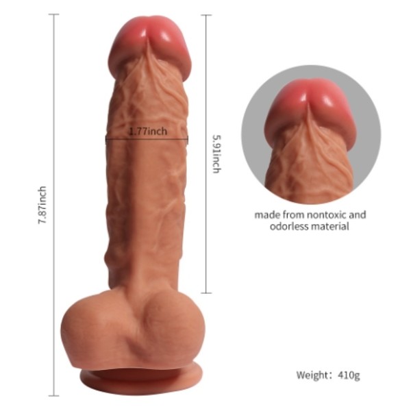 Total length:8.17″(21cm) Insert:5.83″(15cm) Diameter:1.75″(4.5cm) Weight: 410g Double layer liquid Silicone Color: flesh